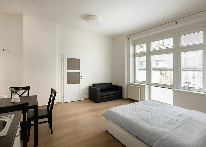Gäste können in einer Küchenzeile ihre eigenen Mahlzeiten zubereiten. Diese Unterkünfte befindet sich in 750 Meter Entfernung von der U-Bahn-Station Národní třída.